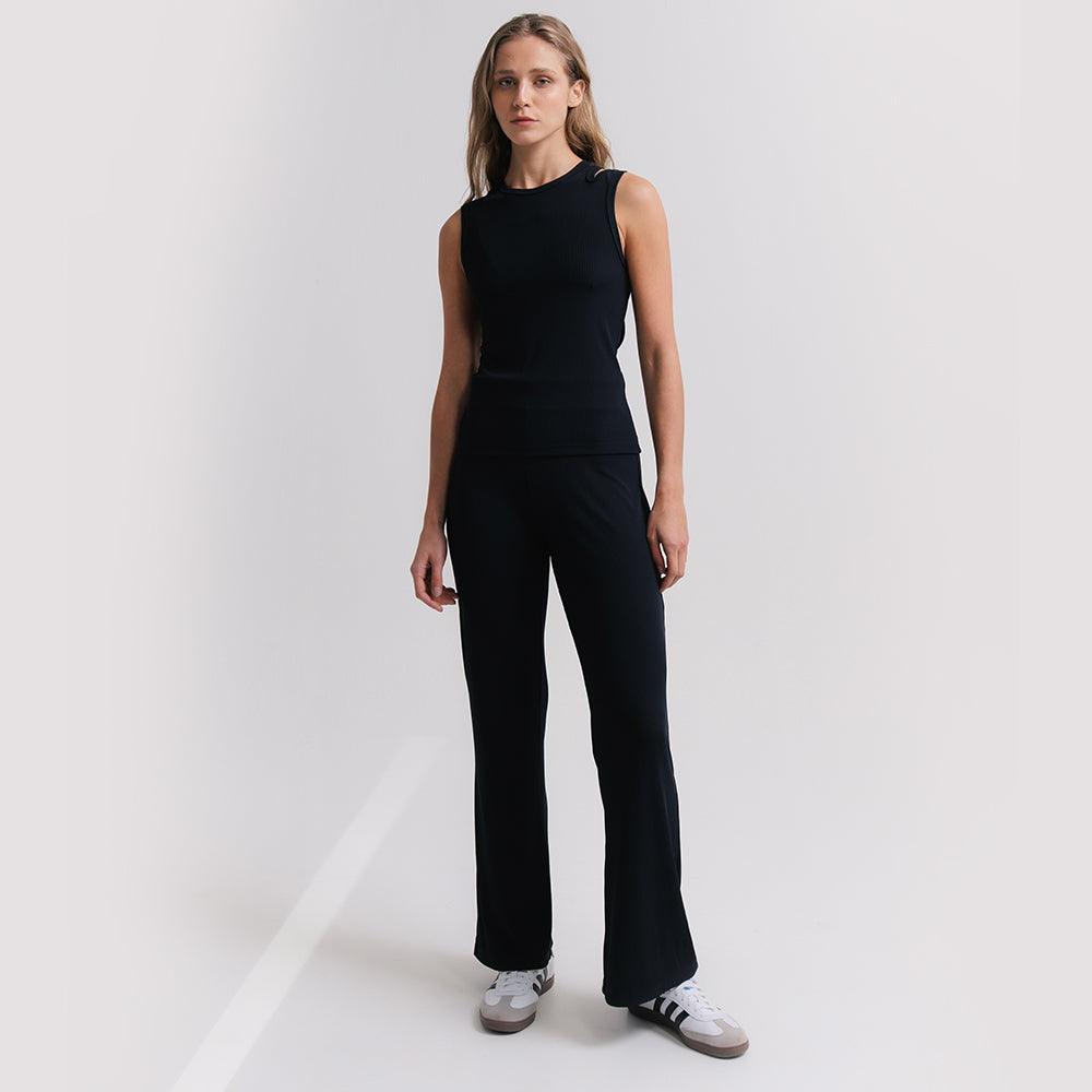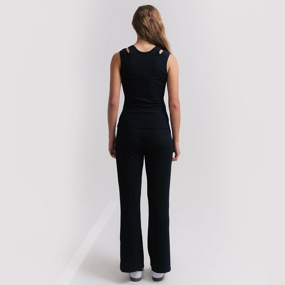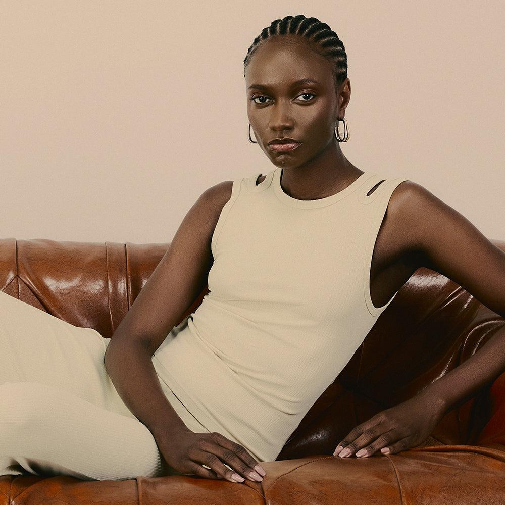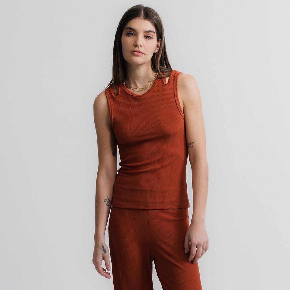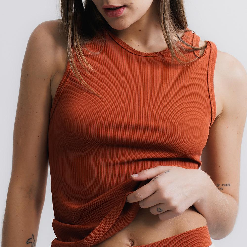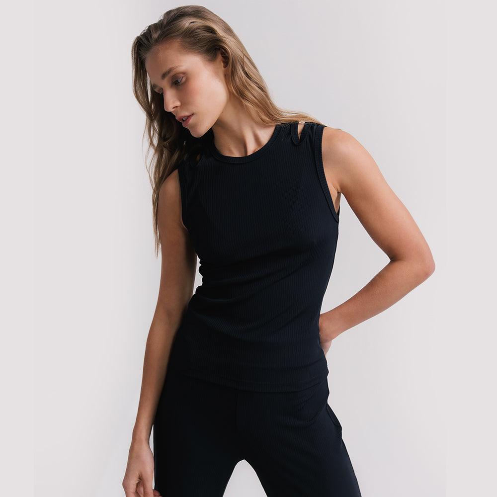 Regata ultra versátil, um must have que funciona como peça principal e por baixo de sobreposições. Seu desenho de recorte geométrico nas alças traz uma leitura distinta ao item essencialmente clássico. O tecido super macio canelado é puro conforto e delicadeza, deve ser tratado com cuidado