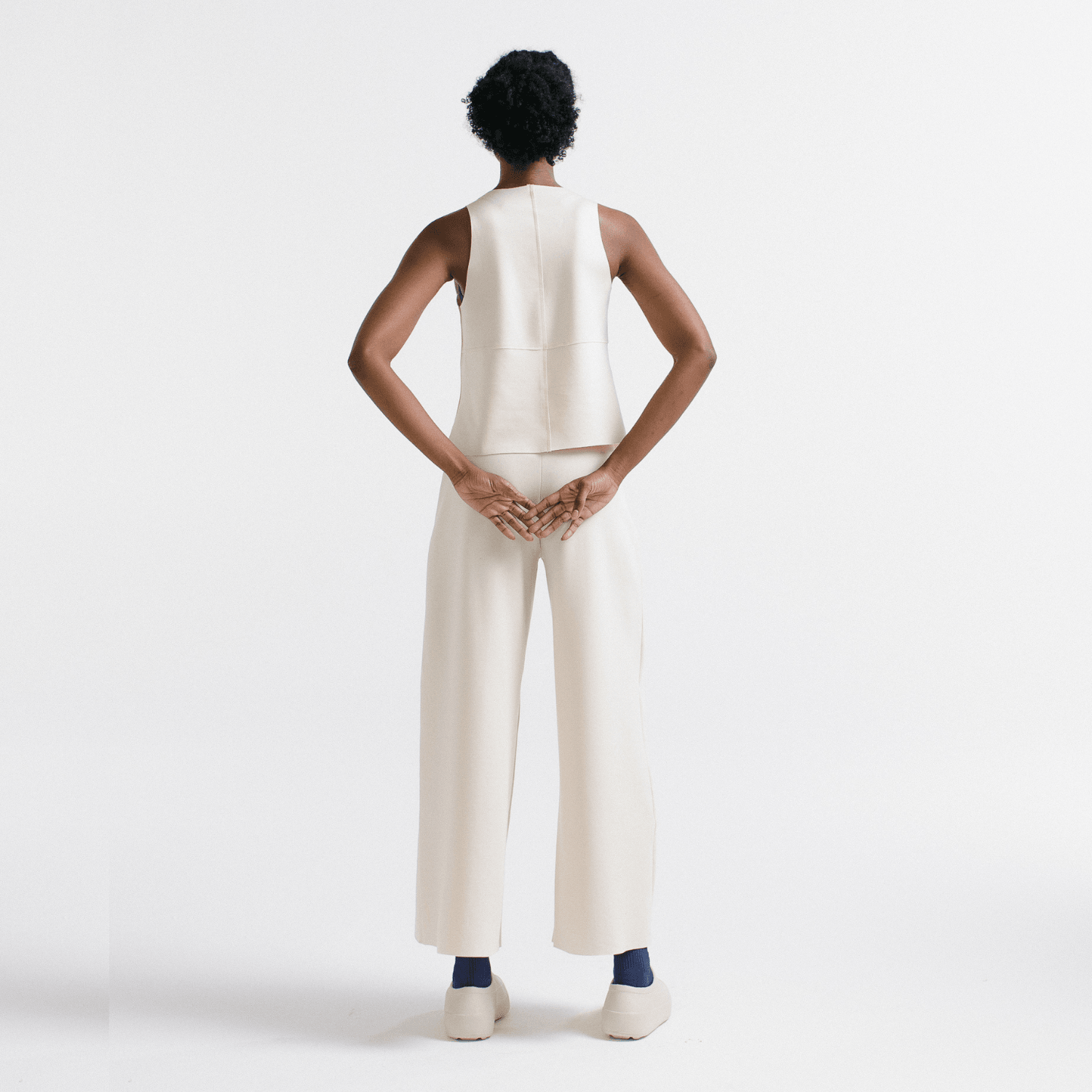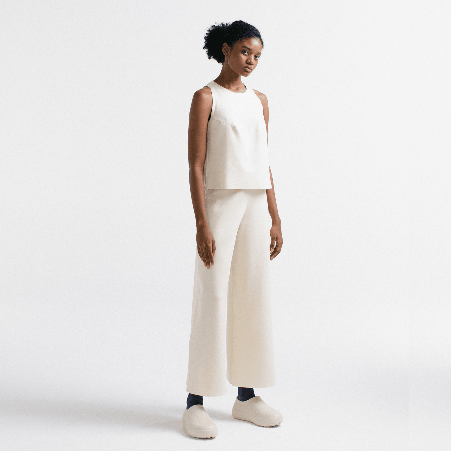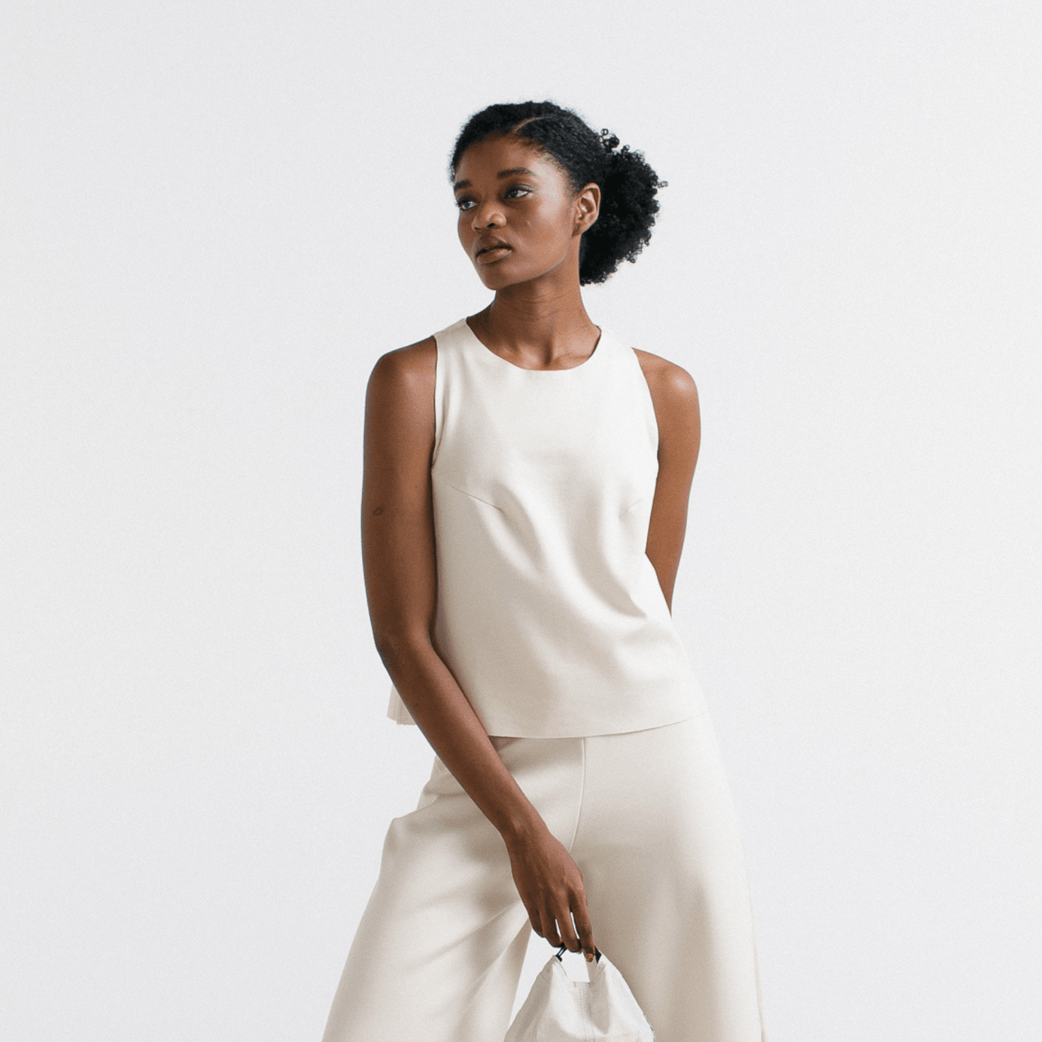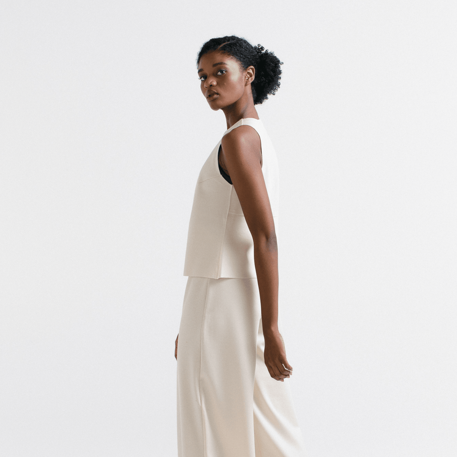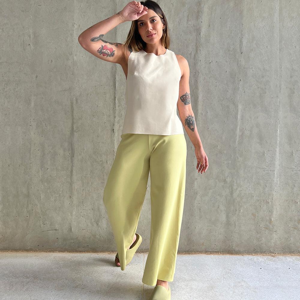 O Minimal Top é a blusa casual sem mangas com decote careca para usar todo dia, das formas mais variadas. Seu shape geométrico possui modelagem boxy, com comprimento entre camiseta regular e cropped.