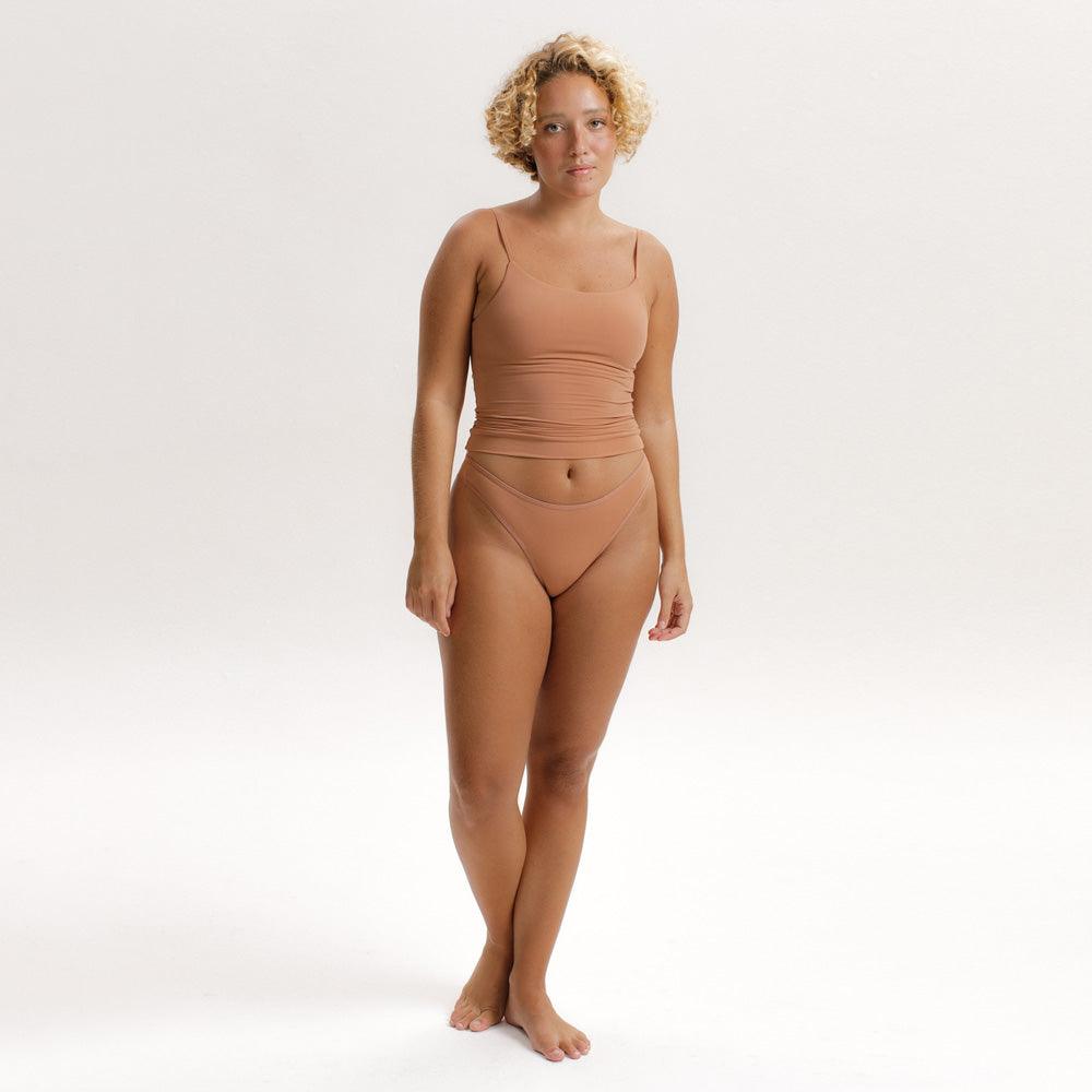 Criamos o perfect top para ser sua blusa casual preferida para o dia-a-dia, pode ser usada como peça principal ou como underwear, tem modelagem aderente ao corpo, com forro duplo no busto e bojo removível, funcionando também como sutiã de leve-média sustentação.